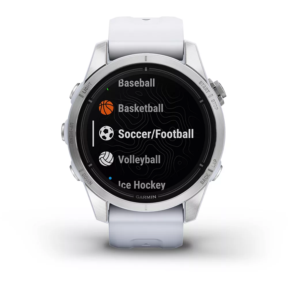 Mehr als 80 aktivitätsprofile sind in die GARMIN Epix pro 42mm Gen 2 Sportuhr integriert, Programme, die Ihnen unter anderem spezielle Workouts für Mannschaftssportarten, Schlägersportarten oder Reiten bieten. Sie können sogar Wassersport betreiben, da diese Uhr bis zu einer Tiefe von 100 m wasserdicht ist.