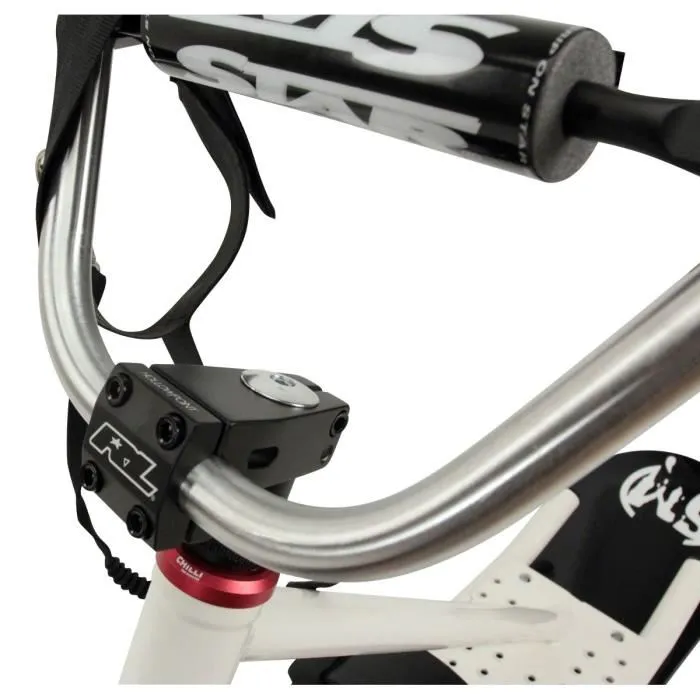 Snowscoot weiß und schwarz, alu Rahmen, BMX LENKER ALU Typ hffm, Spachtel Konstruktion sandwich Sohle schwarz. Gewicht 10,7 kg.