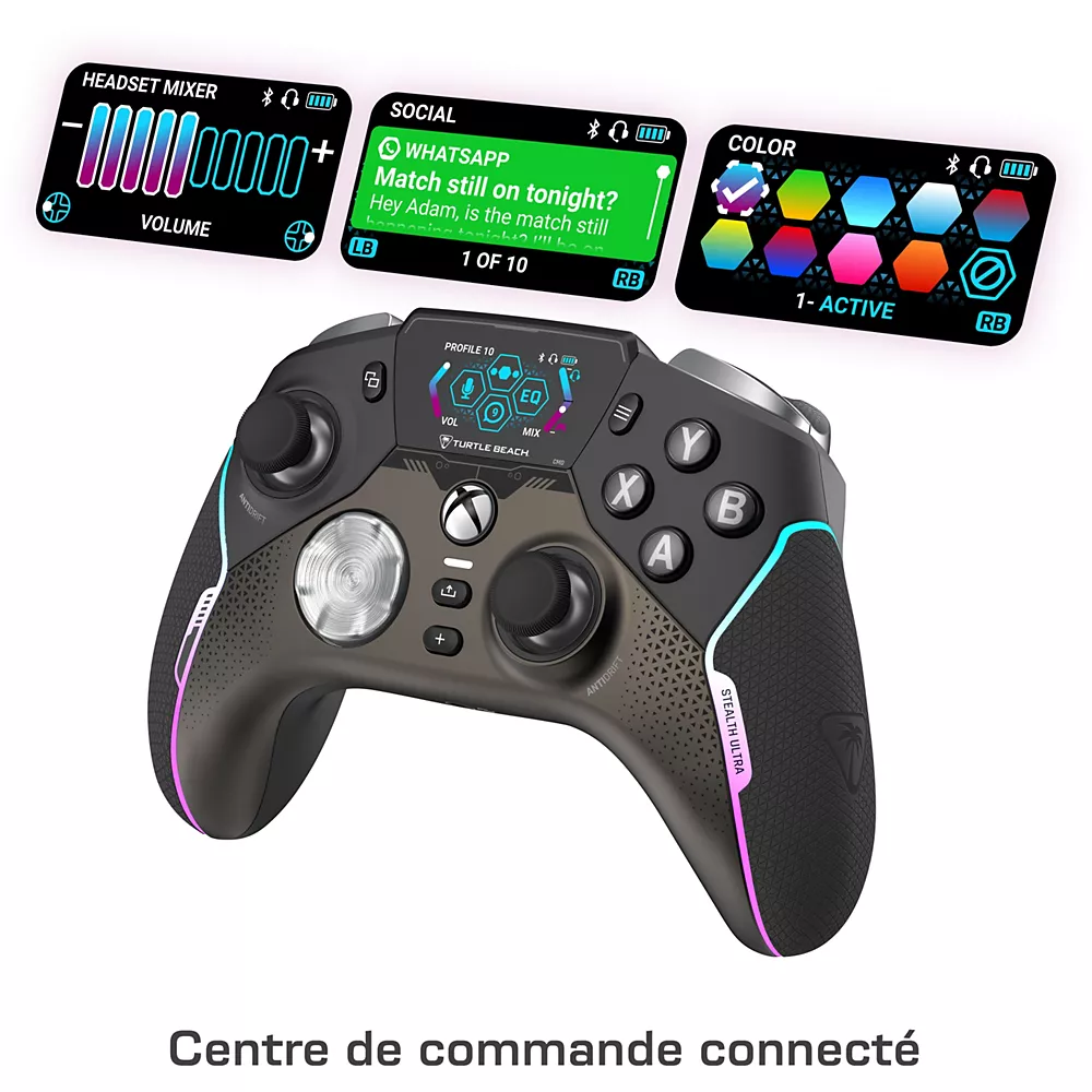 Die Vielseitigkeit ist Dank der Bluetooth®-Konnektivität, die sich auf kompatible Android-und Smart-TV-Geräte erstreckt, groß. Personalisierung ist das Herzstück dieses Controllers mit dem Connected Command Display, einem farbenfrohen Display, mit dem Sie RGB-Beleuchtung, audio und andere Einstellungen anpassen können, während Sie über Benachrichtigungen von sozialen Netzwerken auf dem Laufenden bleiben. AntiDrift â„¢ – sticks und verstellbare Auslöser sorgen für unübertroffene Präzision, während mikrokontaktknöpfe eine 5-mal höhere Haltbarkeit als standardknöpfe Versprechen.